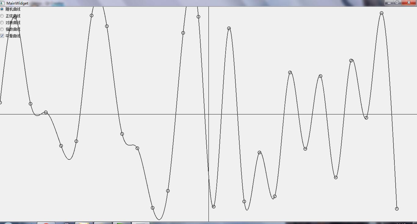下面给出了代码,是我自己写的一个demo,先生成一些点,然后利用此算法生成平滑曲线,大家可以看到效果是很显著的。我自己的demo是用 Qt 写的,版本是 Qt5.2 ,类SmoothCurveCreator即是用于生成平滑曲线的类,他的构造函数接受一个装有原始点(knot points)的QList,生成控制点和QPainterPath,可以用QPainter::drawPath,直接绘制出曲线,同时在demo里面通过生成点来拟出一些常见函数,准确度较高。