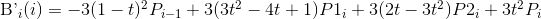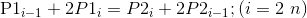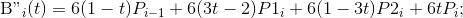 然后我们得到了2n个方程组和2n个未知数(即控制点),显然是可以通过简单的消元把控制点解出来,我们先联立方程(1)和方程(2),消去所有P2点,得到如下方程组: